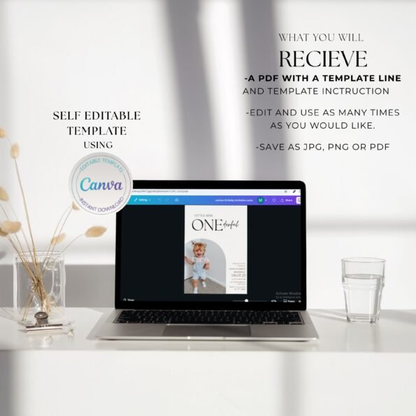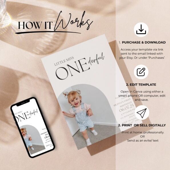 Are you looking for the perfect digital invitation with photos for your child’s 1st birthday party? Look no further! Discover the perfect touch for your toddler’s birthday celebration with this digital invitation template. This personalized and customizable design make planning a breeze. Create a memorable birthday party with a printable invite that will set the tone for a conducive and beautiful celebration. This is a fully personalized self-editable digital template that you can access and fill out yourself! It is fully customizable to your liking, and the product can be printed wherever you choose, or sent digitally as a text/evite