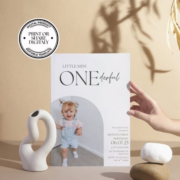 Celebrate your little one’s milestone with a beautiful, photo-ready digital invitation that’s fully editable and easy to personalize. This professionally designed template allows you to customize every detail and create a stunning invite that sets the tone for a joyful and memorable celebration. Print it at home or share instantly via text, email, or social media — your choice