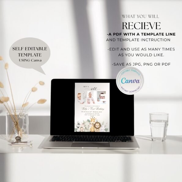 #SafariBirthday #WildOneParty #EditableInvites #DigitalInvitation #PrintableInvite #InstantDownload #CanvaTemplate #FirstBirthday